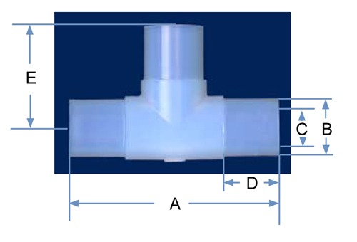 | PFA Part No. | Pipe Size | A | B | C | D | E |