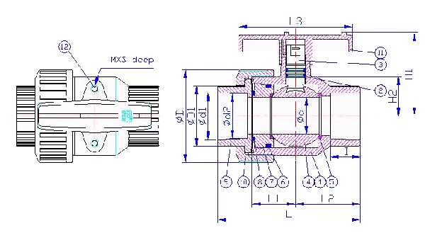 | VP-620 | 1/2"~2" | ANSI, JIS,DIN | PVC | PTFE | EPDM, FPM | Socket, Threaded |
